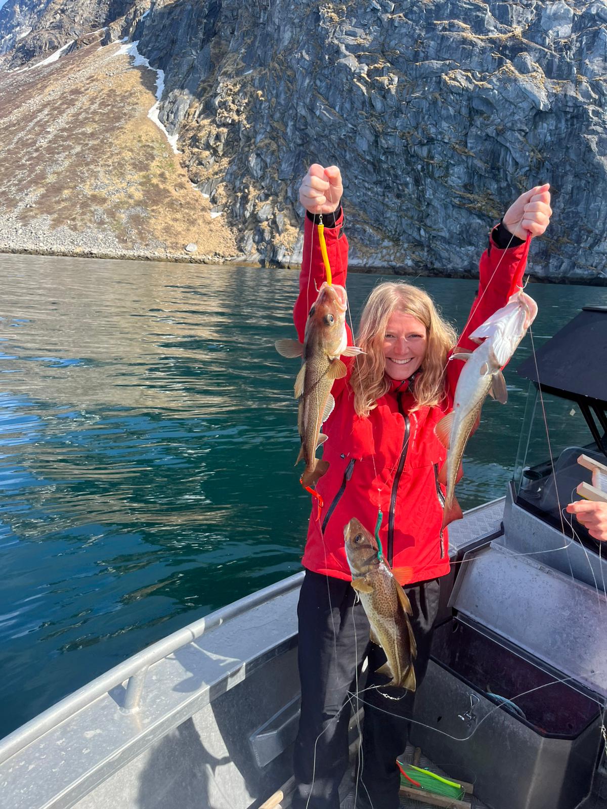 Med fiskestænger i hænderne og udsigt til fjelde og fjord blev der hevet den ene fisk op efter den anden, og stemningen var præget af grin, fællesskab og små sejrsråb, når fangsten lykkedes.